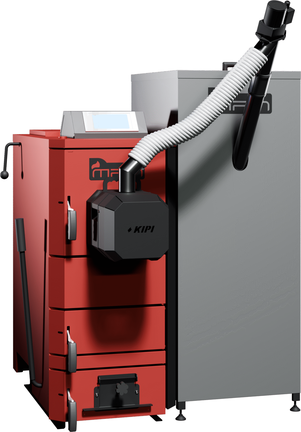 Drugim modelem jest MPM Econergy o konstrukcji modułowej. Użytkownik może wybrać wersję z wbudowanym zasobnikiem lub wariant z zasobnikiem wolnostojącym, który da się ustawić w dowolnej odległości od wymiennika ciepła. Wersja kompaktowa przeznaczona jest do mniejszych kotłowni, natomiast opcja z większym zasobnikiem wydłuża czas pracy pomiędzy kolejnymi zasypami. Kocioł posiada certyfikat 5. klasy oraz spełnia wymagania ecodesign potwierdzone przez Instytut w Brnie, co gwarantuje wysoką efektywność i zgodność z aktualnymi normami.